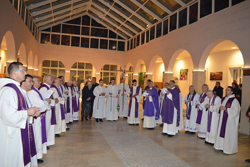 Gvardijan je u homiliji istakaovrijednost žrtve i spremnosti na žrtvu. Franjevački sjemeništarci su asistirali za vrijeme mise a Mješoviti župni zborje svojim pjevanjem uveliča Nakon misnog slavlja u klaustru samostana, ispred reljefa dvadesetorice fratara postavljeno je dvadeset svijeća a fratri i vjernici su izmolili molitvu odriješenja.