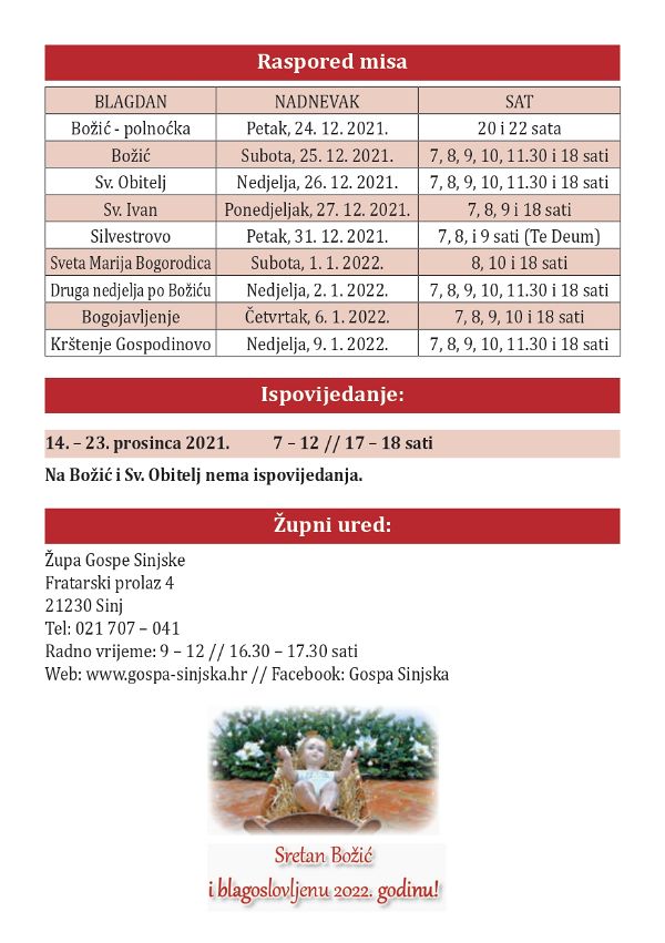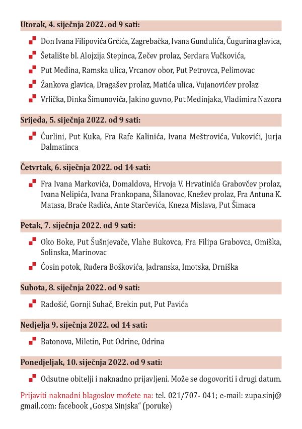 Novi župni listić i raspored blagoslova obitelji za Božić 2021. godine