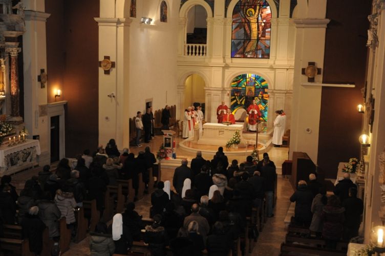 Spomendan blaženog Alojzija Stepinca, utorak 10. veljače 2015., svečano je proslavljen u Svetištu Čudotvorne Gospe Sinjske. Svetu misu je predvodio župnik fra Ante Bilokapić uz koncelebraciju 7-ice svećenika. Preko mise pjevao je Mješoviti župni zbor pod ravnanjem fra Jure Župića i uz orguljsku pratnju s. Jelene Mijić.
