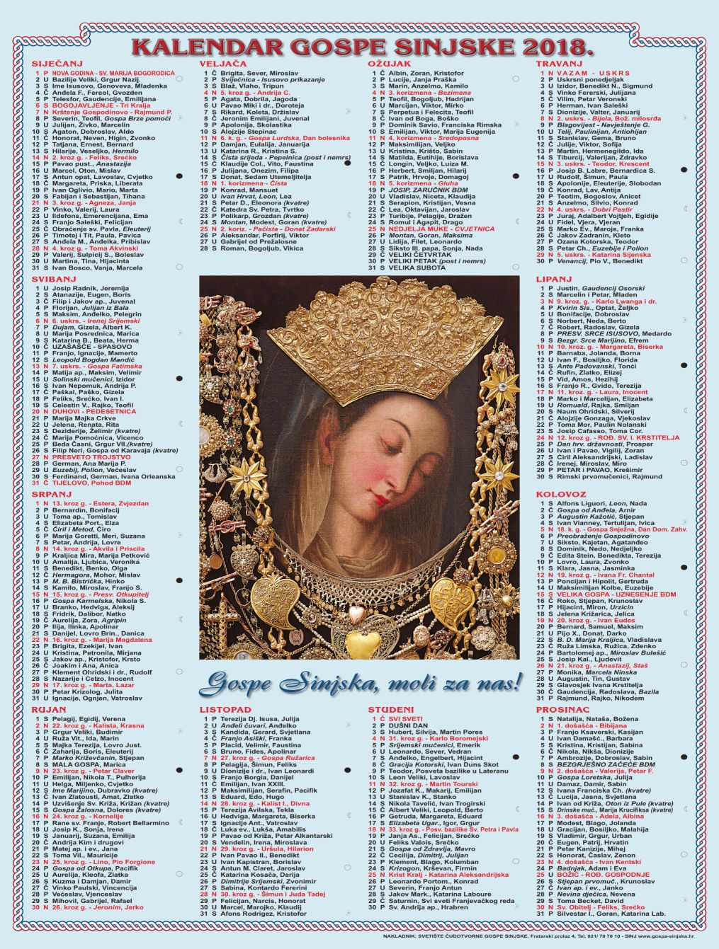 Svetište Gospe Sinjske tiskalo kalendare za 2018. god.