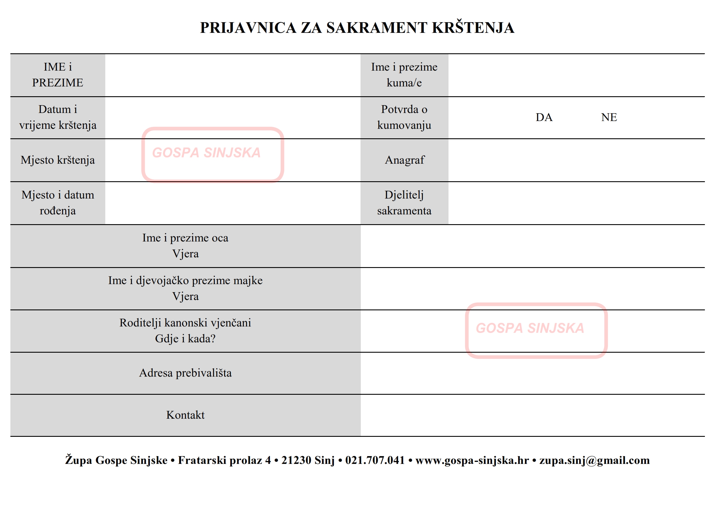 1. Prijavnica za sakrament krštenja (klikni na fotografiju)
