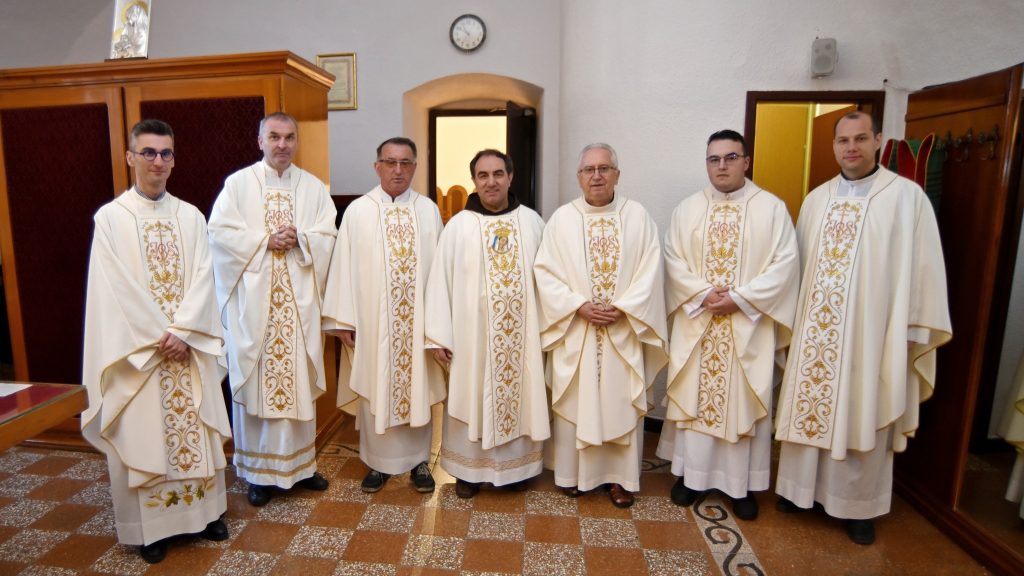Nakon nagovora održano je euharistijsko slavlje kojem je prethodila procesija. Slavljem je predsjedao fra Ivan uz koncelebraciju gvardijana fra Marinka Vukmana, a koncelebrirali su umirovljeni profesor fra Gabrijel Jurišić, don Jure Lovrinčević župnik Župe sv. Marka u Makarskoj i župni vikar don Ivan Mamić, fra Ivan Vuletić pastoralni pomoćnik u Župi Bast-Baška Voda i profesor na KBF u Splitu, fra Stipe Bešlić župnik Župe Tučepi i don Ivan Kovačević župnik Župe Brela.