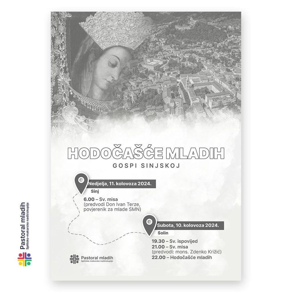 U organizaciji Ureda za pastoral mladih Splitsko-makarske nadbiskupije održat će se 42. hodočašće mladih “od Gospina prasvetišta u Solinu do Svetišta Gospe Sinjske. “