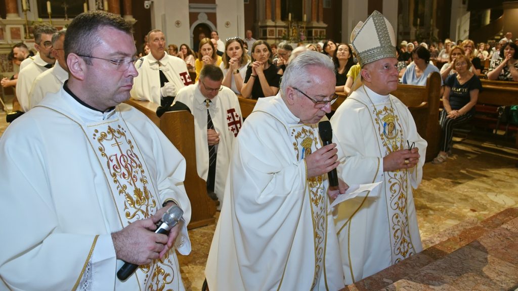 Nakon otvorenja izložbe nadbiskup Mokrzycki predsjedao je euharistijskim slavljem u crkvi Čudotvorne Gospe Sinjske uz koncelebraciju gvardijana i čuvara Svetišta Čudotvorne Gospe Sinjske fra Marinka Vukmana, generalnog vikara Splitsko-makarske nadbiskupije don Franje Frankopana Velića, generalnog vikara Šibenske biskupije don Marinka Mlakića, generalnog vikara Hvarske biskupije don Stanka Jerčića, rektora Nacionalnog svetišta sv. Josipa u Karlovcu don Antuna Sentea. U slavlju su sudjelovala još 10-ica svećenika, predstavnici marijanskih svetišta iz Hrvatske, Bosne i Hercegovine i Poljske. U euharistijskom slavlju sudjelovali su brojni župljani, kao i hrvatski vitezovi Svetoga groba jeruzalemskog.