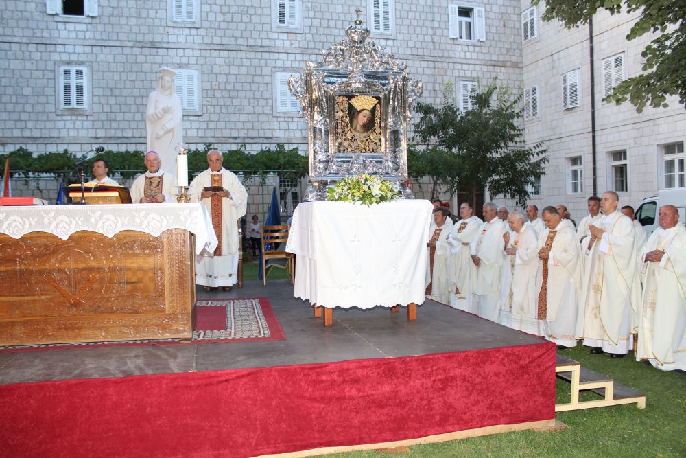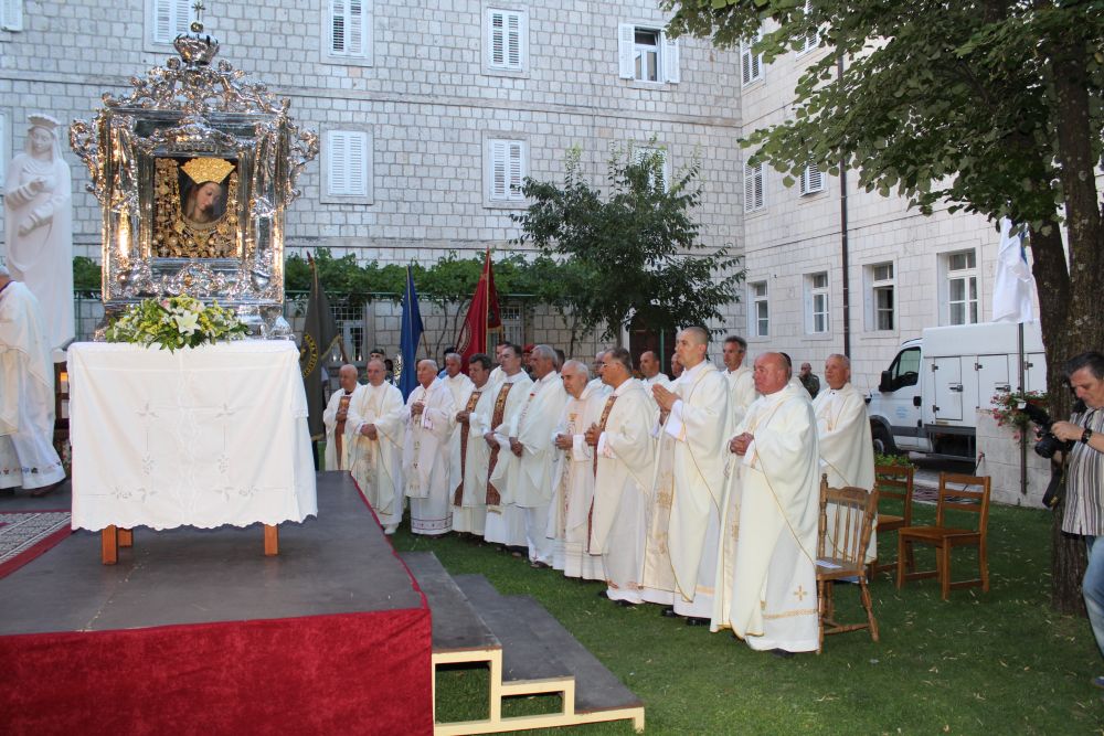 Uoči početka skidanja slike Orkestar OS RH izveo je od 19.30 do 20 sati duhovne i domoljubne skladbe u dvorištu Franjevačkog samostana Gospe Sinjske. Nakon kađenja i skidanja slike u 20 sati uslijedila je svečana procesija iz crkve prema dvorištu. Nakon procesije župnik fra Ante Bilokapić pročitao je pozdravne riječi provincijala fra Joška Kodžomana koji zbog spriječenosti nije mogao sudjelovati u slavlju: