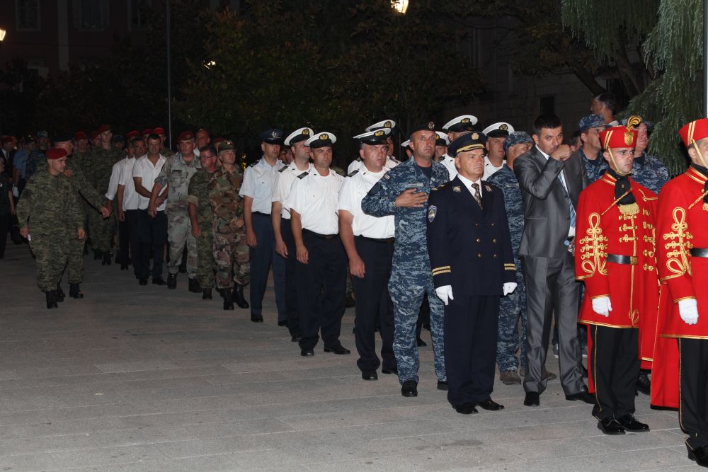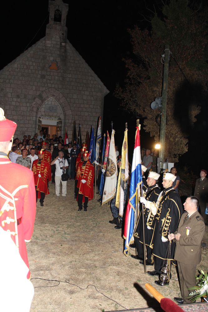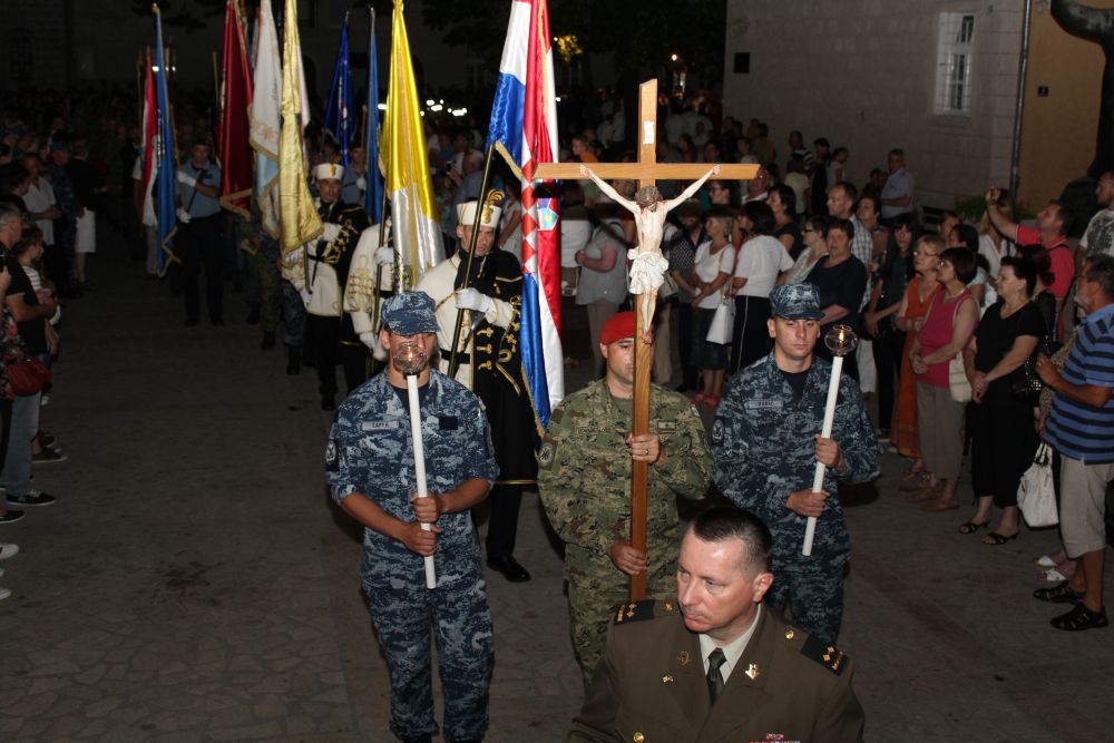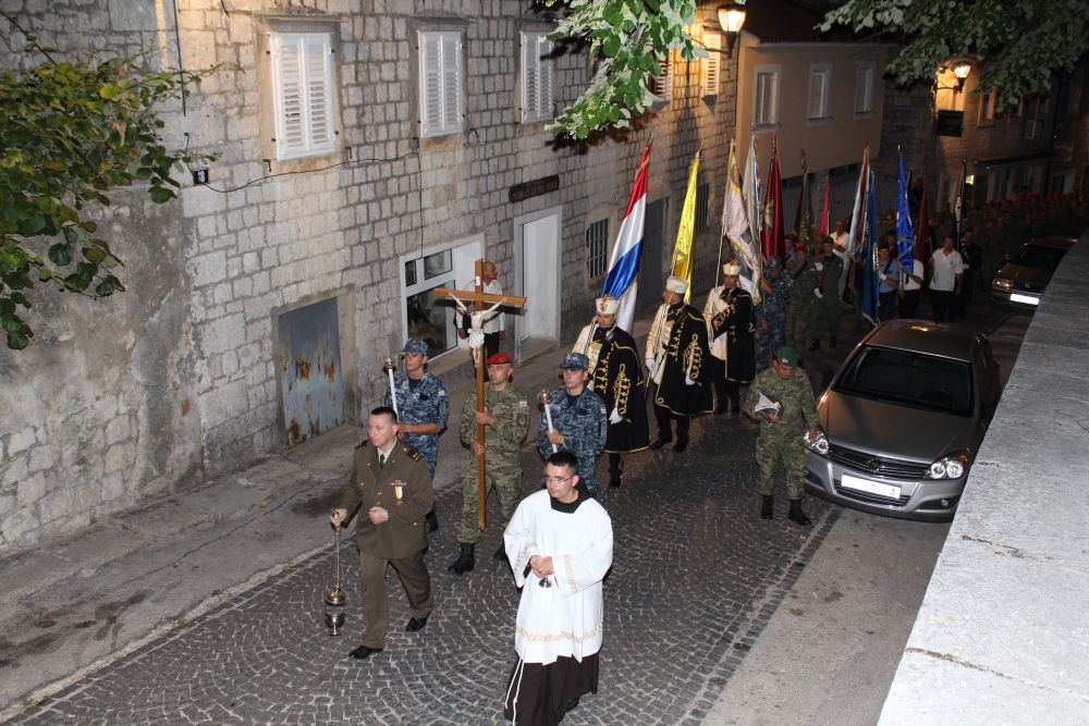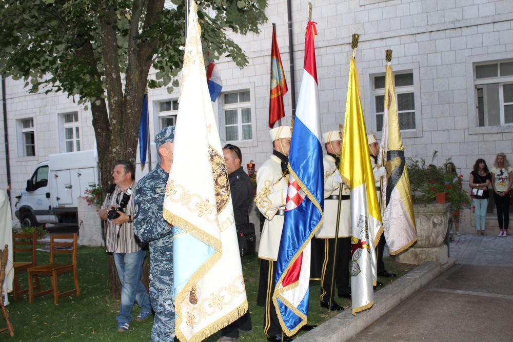 Na početku procesije prema Gradu sa slikom Gospe Sinjske vijorile su se zastave postrojba MORH-a i MUP-a, stjegovi djelatnih postrojbi Oružanih snaga Republike Hrvatske, Glavnog stožera Oružanih snaga Republike Hrvatske s pri stožernim postrojbama (Bojna za specijalna djelovanja, Središnjica elektroničkog izviđanja, Dom GS OS RH i Počasno-zaštitna bojna), Hrvatske kopnene vojske - Zapovjedništvo Hrvatske kopnene vojske s postrojbama: Hrvatska ratna mornarica - Zapovjedništva HRM-a i postrojbe; Hrvatsko ratno zrakoplovstvo i protuzračna obrana - Zapovjedništva HRZ-a i PZO; Zapovjedništvo Hrvatskog vojnog učilišta "Petar Zrinski"; Zapovjedništvo za potporu; stjegovi ustrojbenih cjelina MUP Republike Hrvatske, Ministarstva unutarnjih poslova Republike Hrvatske, Specijalne policije i Policijske akademije.