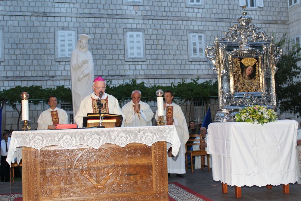 Zbog obaveza nisam u mogućnosti osobno prisustvovati svečanoj svetoj misi, koju predvodi preuzvišeni o. biskup, vojni ordinarij mons. Juraj Jezerinac i ujedno zavjetnom hodočašću pripadnika hrvatske vojske i policije, hrvatskih branitelja i njihovih udruga. U jubilarnoj godini 300. obljetnice slavne pobjede malobrojne kršćanske posade, naših branitelja, nad višestruko brojnijim neprijateljem, te u predvečerje 20. obljetnice najvećeg nacionalnog blagdana i proslave Dana hrvatskih branitelja i Dana domovinske zahvalnosti, koji ćemo za koji dan slaviti u kraljevskom gradu Kninu, još ste jednom svi zajedno okupljeni oko lika One, kojoj možemo zahvaliti za sve svoje izvojevane pobjede, za ponos, slavu i junaštvo naših branitelja kroz povijest do dana današnjega. Zahvalnost je najveća odlika čovječnosti u nama. Sve vrijedno u životu nastaje i rađa se iz zahvalnosti. Bilo da je riječ o obitelji, bilo da je riječ o narodu, bilo da je riječ o vjeri, u kojoj smo kršteni, sve je niklo iz zahvalnosti i sve poziva na zahvalnost.