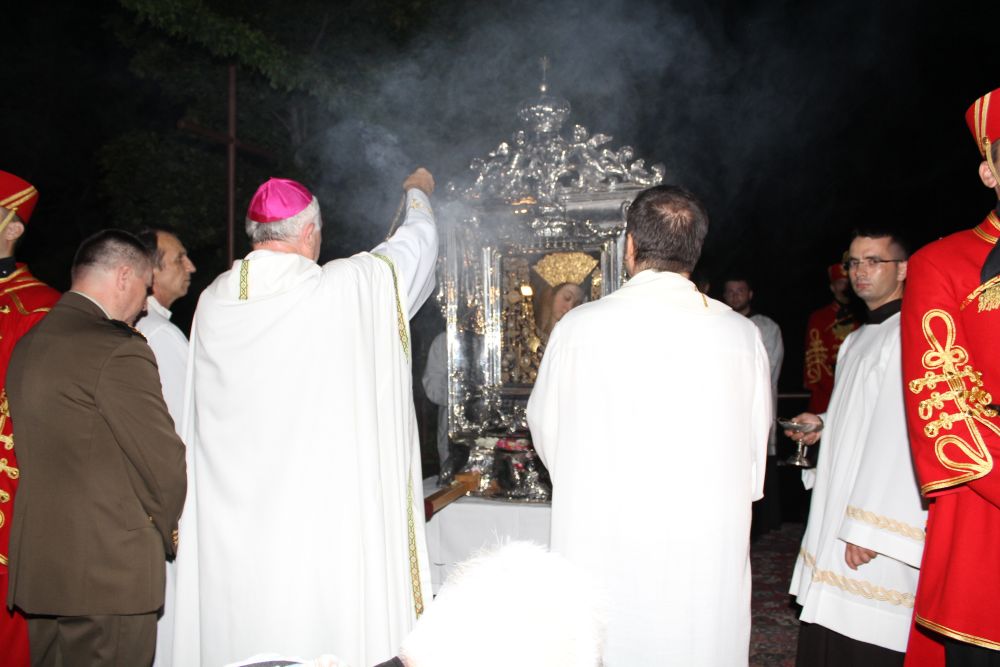 Nakon dolaska na Grad i kađenja slike, ispjevane su lauretanske litanije a zatim je o. Biskup blagoslovio sve vjernike. Slika Gospe Sinjske pohranjena je zatim u crkvu na Gradu. Svi sudionici hodočašća na Grad sa Gospinom slikom imali su mogućnost poljubiti sliku Gospe Sinjske i na taj način iskazati štovanje Blaženoj Djevici Mariji.