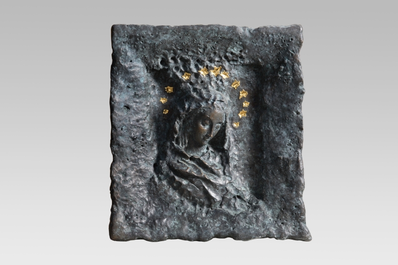 Iznad spomenutih površina sa sinjskim povijesnim uspomenama, nalaze se četiri manja reljefa: Naviještenje, Rođenje, Raspeće, Uskrsnuće. Snažni čisti brončani crteži – teškim a nježnim dlijetom kiparskim. I ne treba pitati što je umjetnik mislio; djelo govori vlastitim jezikom o tome kako se po toj Gospi u tome narodu trajno začinje, rađa, razapinje i uskrsava Isus Nazarećanin. I kako se sva povijest spasenja događa i u povijesti Crkve u Hrvata.