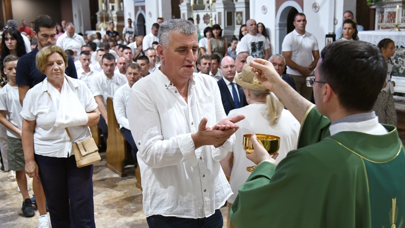 U propovijedi fra Antonio je kazao da čovjek samo vjerujući u Bogu može pronaći sebe. „Mnoštvo koje je išlo za Isusom tražilo je ono što im svijet ne može dati. Isus pokazuje svoju osjetljivost za ljude i njihove potrebe. On brine oko toga kako im priskrbiti kruha da blaguju, da ih ne ostavi gladnima i da ne skapaju putem. Zato je ovaj evanđeoski događaj poziv svim ljudima, napose nama vjernicima, da u planiranju svojih aktivnosti ne previdimo svoje duhovne potrebe, već da ih stavimo u prvi plan. Pozvani smo ove dane mnoštvu koje će doći u Sinj za Alku i Veliku Gospu pružiti duhovnu poruku ljubavi prema Bogu i Gospi, našega zajedništva i odgovornosti. To ćemo moći ako budemo išli za Gospodinom i hranili se euharistijskom hranom“, kazao je župnik.